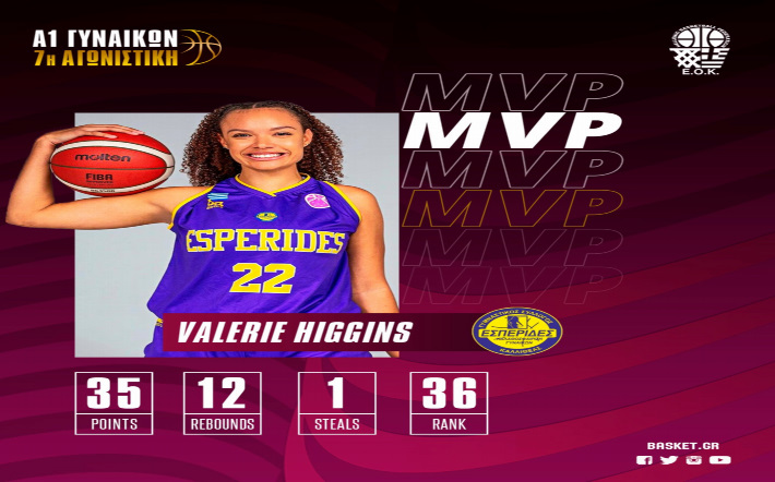 Βαλερί Χίγκινς (Εσπερίδες): 35πόντοι, 12 ριμπάουντ