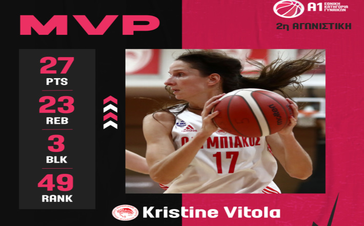 Η Βίτολα είχε 27 πόντους, 23 ριμπάουντ, 3 ασίστ, 2 κλεψίματα και 3 τάπες σε 32’11’’ για να φτάσει στο 49 (!) στο σύστημα αξιολόγησης, βοηθώντας παράλληλα τον Ολυμπιακό να φτάσει στο 91-77 επί του Ηρακλή.