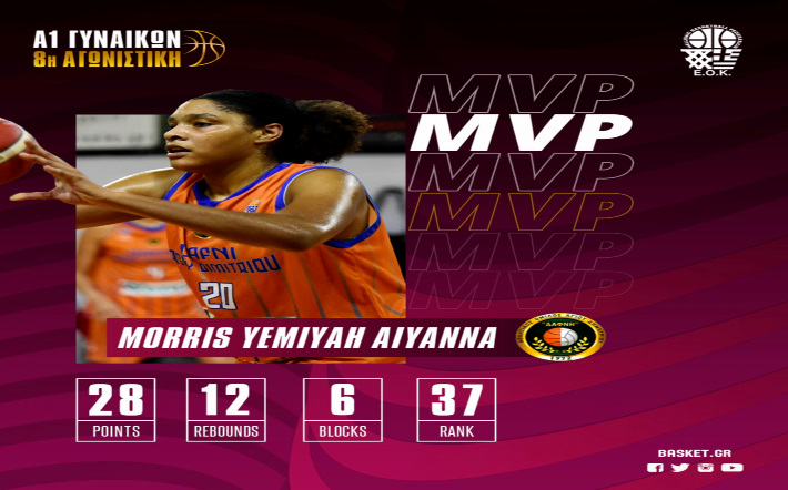 Από σπουδαίες εμφανίσεις αθλητριών σημαδεύτηκε η 8η Αγωνιστική του πρωταθλήματος της Α1 Γυναικών με την Γεμίγια Μόρις της Δάφνης Αγ. Δημ. να αναδεικνύεται πολυτιμότερη παίκτρια (MVP).