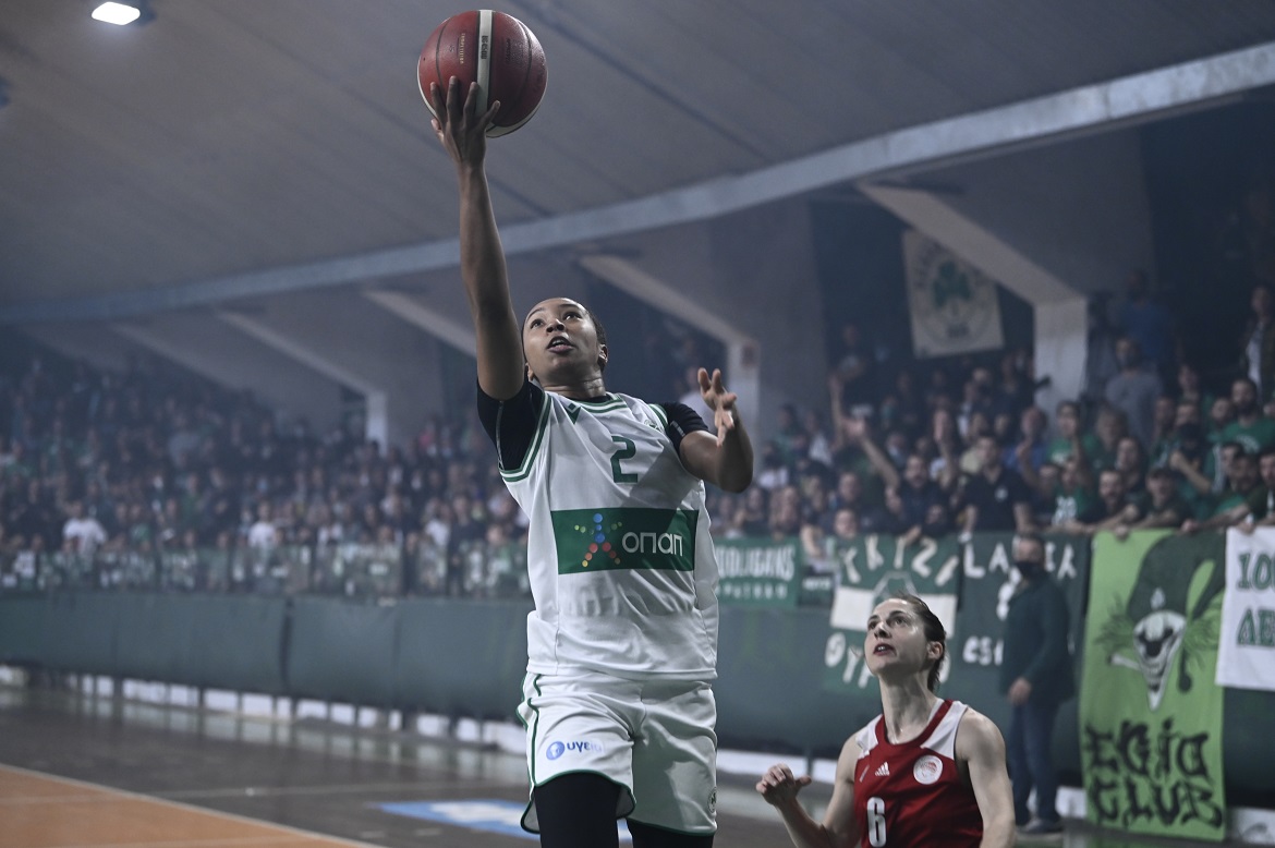 Ο Παναθηναϊκός μετά το πρώτο πεντάλεπτο βρήκε ρυθμό και κατάφερε να ξεφύγει με τρίποντο της Χολμς με 17-10 (στο 9’). Ο Ολυμπιακός αντέδρασε στο δεύτερο δεκάλεπτο, βρήκε λύσεις και μέσα στο ζωγραφιστό και με ένα σερί 10-0 προηγήθηκε με 20-17.