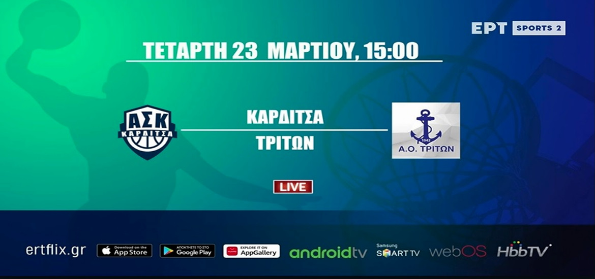 Το ΒΙΟΛΟΓΙΚΟ ΧΩΡΙΟ ΑΣ Καρδίτσας υποδέχεται στις 15:00 τον Τρίτωνα στο ντέρμπι κορυφής της Α2 Ανδρών.