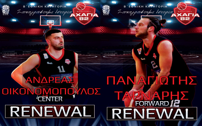 Ο Παναγιώτης Ταρνάρης και ο Ανδρέας Οικονομόπουλος είναι δύο αθλητές που είναι άμεσα συνυφασμένοι με την Αχαγιά 82 και ο σύλλογος μας δεν θα μπορούσε να μην ξεκινήσει από αυτούς τις ανανεώσεις της νέας χρονιάς".