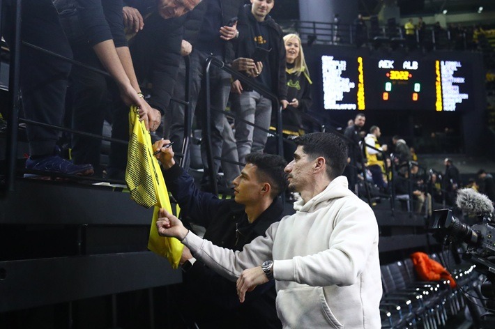 ΕΝΩΣΗ... ΕΝΩΜΕΝΗ: Η ποδοσφαιρική ΑΕΚ διανύει μια εντυπωσιακή σεζόν σε όλα τα μέτωπα και λίγα 24ωρα πριν το μεγάλο ντέρμπι του πρωταθλήματος με τον Ολυμπιακό πήγε να δει και μπάσκετ. Η παρουσία του Μάρκο Νίκολιτς, πολλών παιτκών και μελών της ΠΑΕ είχε αναγγελθεί και είχε ξεσηκώσει τον κόσμο και αυτοί γνώρισαν την αποθέωση με την εμφάνισή τους στο γήπεδο.