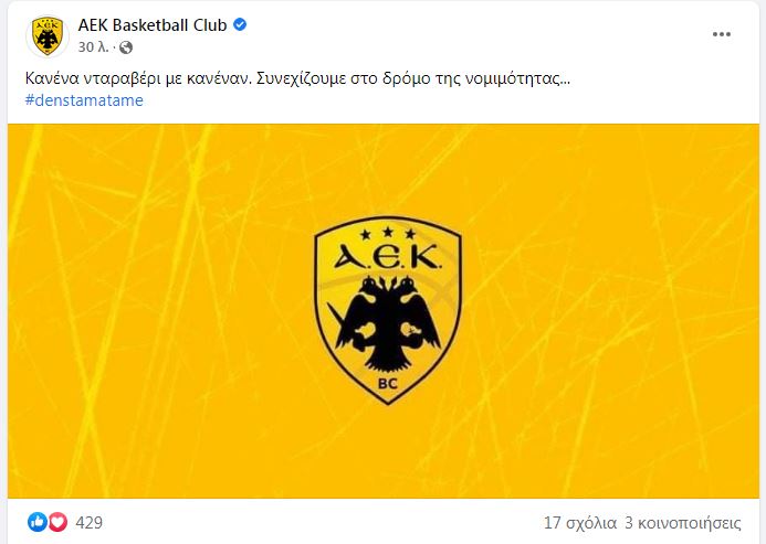 Η ΑΕΚ προφανώς και παρακολουθεί στενά τις εξελίξεις. Αφού το πρωί πήγε στην Εισαγγελία και κατέθεσε στοιχεία για τος σοβαρές καταγγελίες που είχε κάνει τις προηγούμενες μέρες, διευκρινίζοντας μάλιστα με επίσημη ανακοίνωση ότι στον φάκελλο δεν περιλαμβάνεται το όνομα του γ.γ. του ΕΣΑΚΕ και μέλους της επιτροπής αδειοδοτήσεων Γιώργου Πανταζόπουλου, στη συνέχεια έβγαλε και μία... δωρική ανακοίνωση που ο καθένας μπορεί να ερμηνεύσει κατά το δοκούν. «Κανένα νταραβέρι με κανέναν. Συνεχίζουμε στο δρόμο της νομιμότητας» ανέφερε και αναμένονται πλέον οι εξελίξεις.