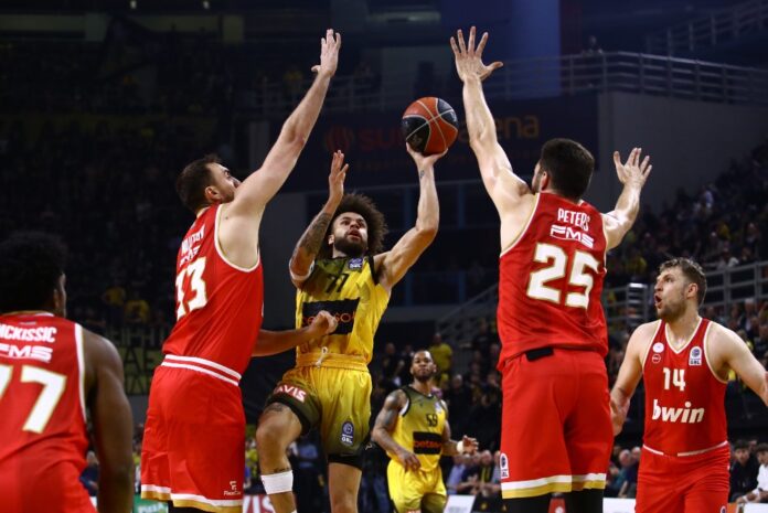 Η ομάδα του Γιώργου Μπαρτζώκα ξεκίνησε δυναμικά το πρώτο δεκάλεπτο με τον Σάσα Βεζένκοφ να σκοράρει 15 πόντους. Στην συνέχεια, η ΑΕΚ εκμεταλλεύτηκε το αδρανές δεύτερο δεκάλεπτο των φιλοξενούμενων και πλησίασε στο σκορ, μειώνοντας στους 3 πόντους στο ημίχρονο.
