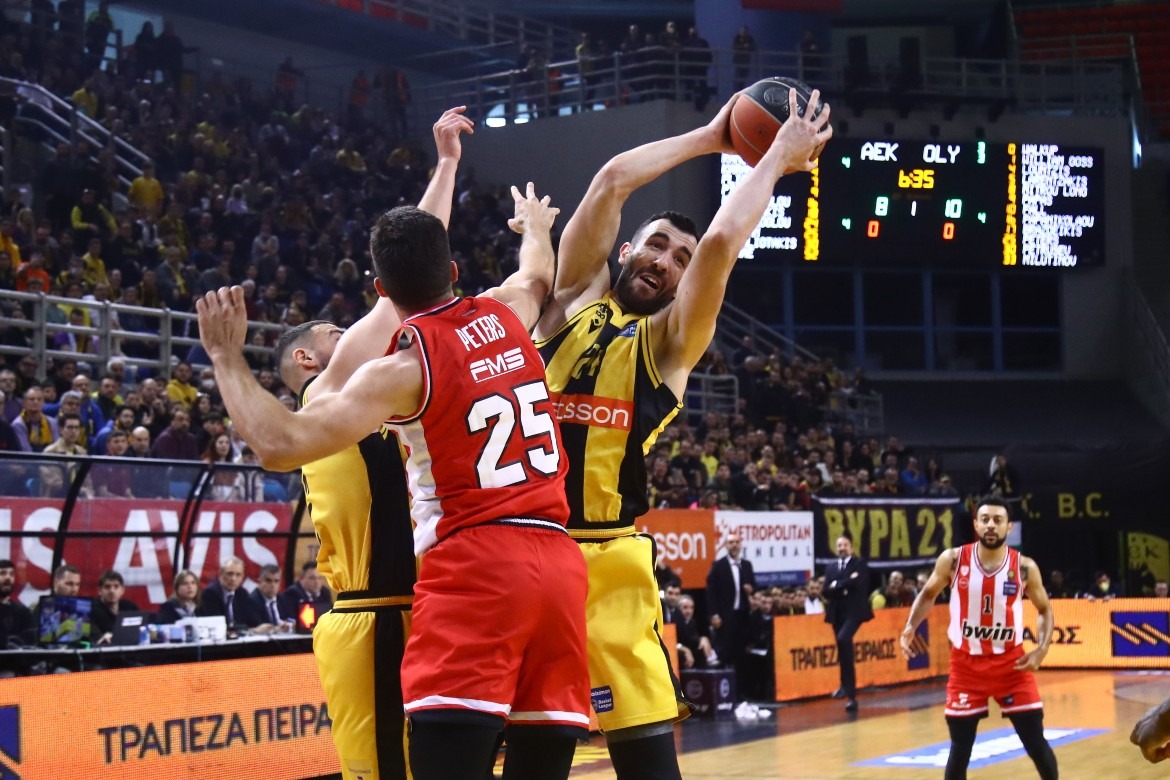 Αναγκάζοντας τους παίκτες του Μπαρτζώκα σε σειρά από άστοχα μακρινά σουτ και βλέποντας τον Ματαλιωτάκη να προστίθεται ως παράγοντας στο παιχνίδι της δίπλα στους ΜακΡέι και Τίλμαν, η ΑΕΚ μπήκε ξανά στο ματς, μειώνοντας με επιμέρους 12-3 σε απόσταση πέντε πόντων στα μισά της τελευταίας περιόδου (69-74). Ο Γκος έφερε ηρεμία σε εκείνο το σημείο για τον Ολυμπιακό, οι γηπεδούχοι έφταναν σε βεβιασμένες επιλογές στο τέλος των επιθέσεων και ο Παπανικολάου έμοιαζε να δίνει την «χαριστική βολή» με τρίποντο για το 74-84 στα 94" για την εκπνοή. Ο Πίτερς έκανε... βεβαιότητα το «διπλό» με γκολ-φάουλ ακριβώς στα 60" για το 76-87 και, κάπως έτσι, ο Ολυμπιακός δεν χρειάστηκε στο φινάλε να «καρδιοχτυπήσει» (80-92).