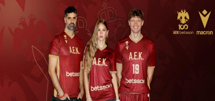 «Η ΑΕΚ ΒΕΤSSON BC ανακοινώνει, ότι σήμερα (Δευτέρα, 12/02) αποκαλύπτει την επετειακή – συλλεκτική φανέλα της Macron Hero για τα 100 χρόνια ίδρυσης του Συλλόγου μας.