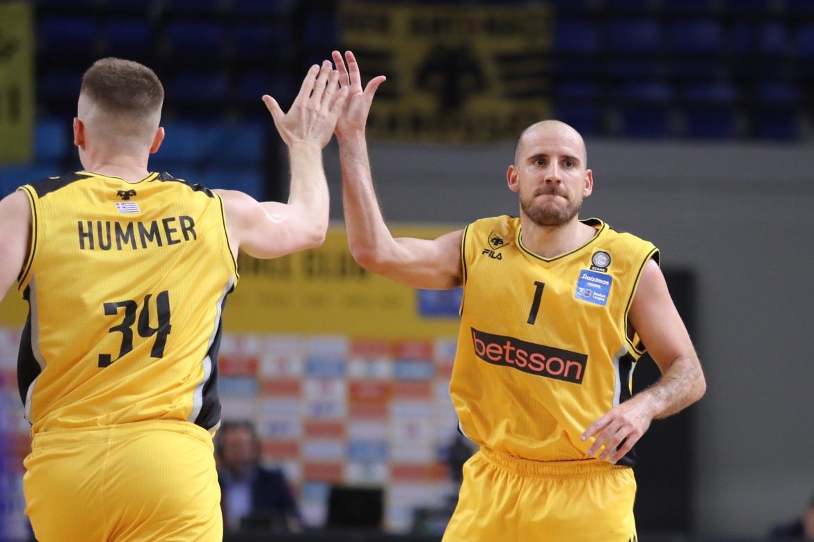ΔΙΔΥΜΟ "ΦΩΤΙΑ": Κίνο Κολόμ (21 πόντους, 7 ασίστ) και Ίαν Χάμερ (18 πόντους και 9 ριμπάουντ) τράβηξαν το κουπί για την ΑΕΚ και την ώθησαν σε μία αγχωτική νίκη.