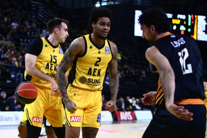 Η ΑΕΚ νίκησε στη Sunel Arena τον Προμηθέα Πάτρας με 102-85, στο παιχνίδι που άνοιξε την αυλαία της 20ης αγωνιστικής της κανονικής περιόδου της GBL.
