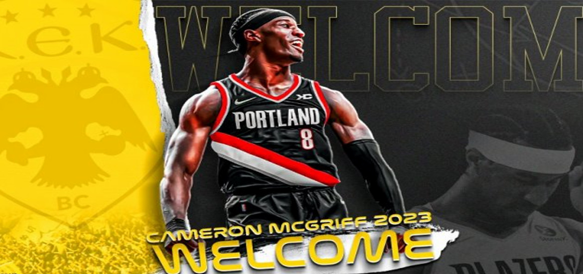 H AEK ΒC βρίσκεται στην ευχάριστη θέση ν’ ανακοινώσει, ότι συνήψε συμφωνία με τον Κάμερον ΜακΓκρίφ (Cameron McGriff, 24 χρ., 2μ.01).