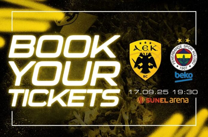 Η ΑΕΚ BC ανακοινώνει, ότι ξεκίνησε η ηλεκτρονική διάθεση εισιτηρίων για τη φιλική αναμέτρηση με Φενερμπαχτσέ, η οποία θα διεξαχθεί την Τετάρτη (17/09, 19:30) στη SUNEL Arena.