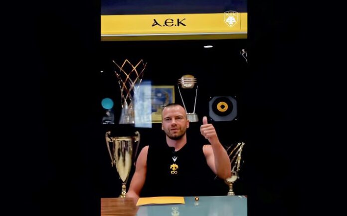 Μέσω video και με την ατάκα «είμαι εδώ» ανακοίνωσε η ΑΕΚ τη συμφωνία της με τον Λούκας Λεκαβίτσιους (1,77 – 31 ετών).