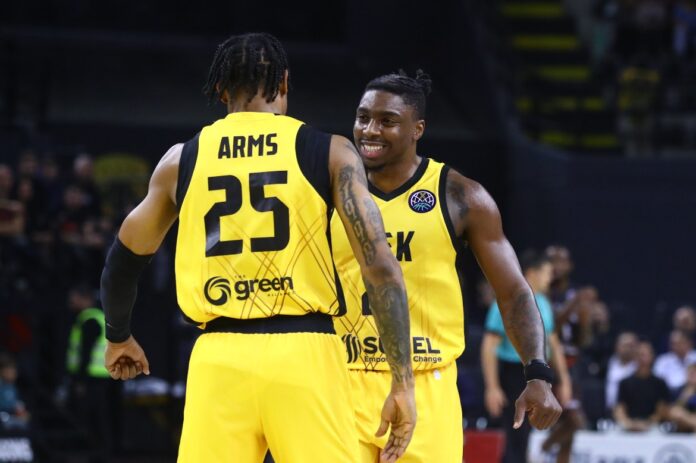 Ο Γκρέι έδωσε πρώτος το σύνθημα μαζί με τον Σίλβα για την ΑΕΚ, για να έρθει ο Αρμς... με φόρα να καρφώσει για το 12-2 στα πρώτα έξι λεπτά. Η Ένωση είχε βρει εξαιρετικό ρυθμό, με τον Μπάρτλεϊ και τον Λεκαβίτσιους να ευστοχούν από μακριά και να της δίνουν ευρύ προβάδισμα 12 πόντων στο τέλος του πρώτου δεκαλέπτου (22-10).