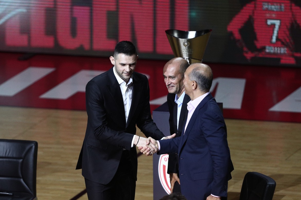 Γιώργος Αγγελόπουλος: «Όταν μιλάει ο κόσμος, εμείς πρέπει να σωπαίνουμε. Το 2010, όταν ξεκινήσαμε τις συζητήσεις μαζί του, ήταν πολύ δύσκολο και για τους δυο μας. Φτάσαμε κάποια στιγμή σε αδιέξοδο και σκεφτήκαμε, ότι ίσως έπρεπε να τον διεκδικήσουμε άλλη στιγμή, όπως είχαμε κάνει, όταν έπαιζε στο Μαρούσι. Ήμουν στις ΗΠΑ τον καιρό, που κάναμε τις διαπραγματεύσεις μαζί του και, με το που προσγειώθηκα από τις ΗΠΑ στην Ελλάδα, υπογράψαμε τον Βασίλη και ξεκίνησε να αλλάζει η ιστορία του Ολυμπιακού. Με τον Βασίλη ηγέτη πετύχαμε απίστευτα πράγματα, ξεπεράσαμε τα όνειρά μας και ζήσαμε μαγικές στιγμές, κάποιες από τις καλύτερες της ζωής μας. Ο Βασίλης κέρδισε με το σπαθί του στα αποδυτήρια το δικαίωμα να είναι ο ηγέτης μας και αξίζει αυτό που ζει. Φτάσαμε στην κορυφή της Ευρώπης κόντρα σε όλους και σε όλα. Υπήρχαν και δύσκολες μέρες, όπου πάντα συζητούσαμε κι εκείνος μας στήριξε σε όλες τις αποφάσεις, τόσο το 2011 όσο και στο "Μέχρι τέλους". Βασίλη, ευχαριστούμε για όλα».