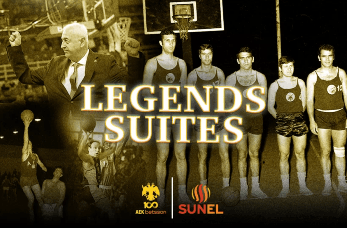 Η ΑΕΚ προχωράει σε μια πρωτοποριακή κίνηση, δημιουργώντας στο γήπεδο των Ανω Λιοσίων τις legend suites, με κάθε μία από αυρές δηλαδή να φέρει το όνομα ενός θρύλου του σωματείου. Οι 8 σουίτες έχουν τα εξής ονόματα: Γιώργος Αμερικάνος, Γιώργος Τρόντζος, Χρήστος Ζούπας, Στέλιος Βασιλειάδης, Αίας Λαρεντζάκης, Γιώργος Μόσχος, Μηνάς Γκέκος, Ντράγκαν Σάκοτα. Ο Μάκης Αγγελόπουλος παρουσίασε σήμερα αυτή την ιδέα και είπε σχετικά: