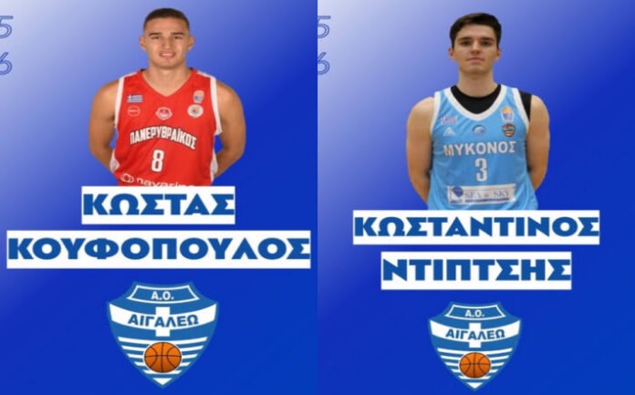 Τις δυο πρώτες του μεταγραφές ανακοίνωσε το Αιγάλεω, ενισχύοντας τη περιφερειακή του γραμμή με τους Κώστα Κουφόπουλο (1,87 – 26 ετών) και Κωνσταντίνο Ντιπτσή (1,93 – 20 ετών).