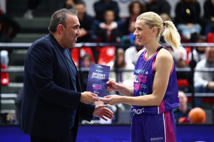 Η γκαρντ του Αθηναϊκού, Εβίνα Σταμάτη, αναδείχθηκε νικητήρια στον διαγωνισμό τριπόντων που πραγματοποιήθηκε στο ημίχρονο του αγώνα του All Star Game 2024.