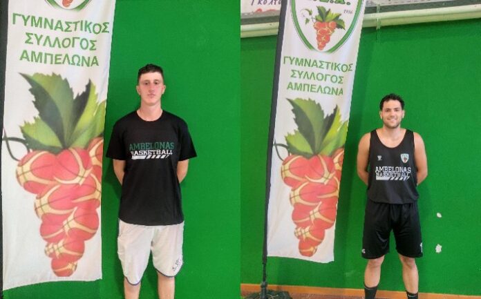 Ο Αμπελώνας ετοιμάζεται για την νέα χρονιά στην National League 2, αποκτώντας δύο ακόμη αθλητές, καθώς απέκτησε τους Νίκο Λιάπη (1,97 - 24 ετών) και Βασίλη Κίτσιο (2,02 - 21 ετών), που θα ενισχύσουν τους Θεσσαλούς στην νέα τους προσπάθεια.