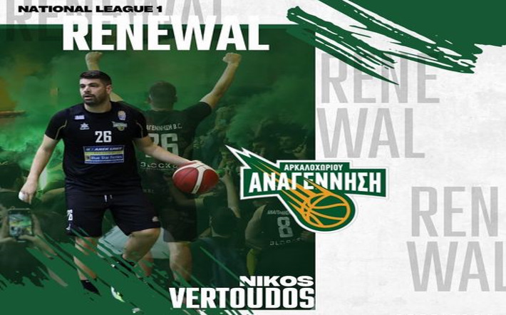 Και στην Β’ Εθνική θα συνεχίσει να αγωνίζεται με την Αναγέννηση Αρκαλοχωρίου ο Νίκος Βερτούδος (1,88 - 33 ετών).