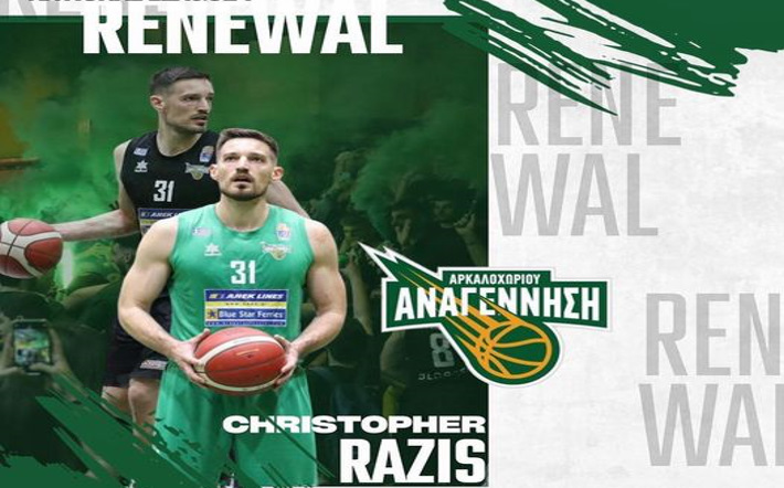 Πρώτος παίκτης που ανανεώνει είναι ο έμπειρος γκαρντ, Χριστόφορος Ραζής (1,94 - 34 ετών), ο οποίος την περσινή σεζόν είχε 8,7 πόντους ανά αγώνα. Παράλληλα συνεχίζει και στη θέση του τεχνικού διευθυντή.