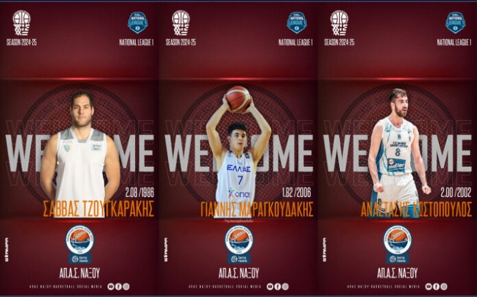 Για τους δυο πρώτους το basketa.gr σας είχε ενημερώσει για τις συμφωνίες, ενώ και οι αθλητές έχουν αγωνιστεί με την ομάδα της Νάξου, ενώ ο τρίτος προέρχεται από την Elite League και τον Ερμή Σχηματαρίου όπου σε 19 αγώνες είχε 4,8 πόντους και 1,7 ριμπάουντ.