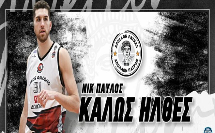«Ο Α.Σ. Απόλλων Πατρών ανακοινώνει την έναρξη της συνεργασίας του με τον Νικ Παύλο, ο οποίος θα ενισχύσει την ομάδα μας τη σεζόν 2025–2026.
