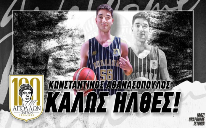 «Ο Α.Σ. Απόλλων Πατρών καλωσορίζει τον Κωνσταντίνο Αθανασόπουλο στην οικογένεια της ομάδας μας.