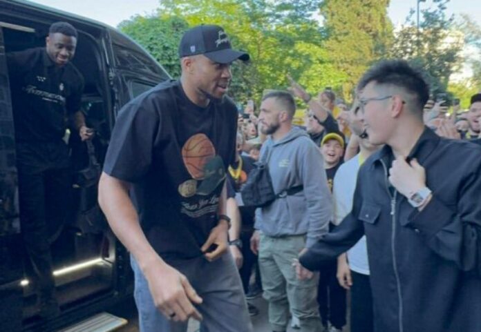 Όταν έφτασαν στο γήπεδο μαζί με τον μεγαλομέτοχο της ομάδας Ρίτσαρντ Σιάο -ο οποίος είναι φίλος με τον «Greek Freak»- έτυχαν αποθεωτικής υποδοχής από τους φίλους των «κίτρινων».