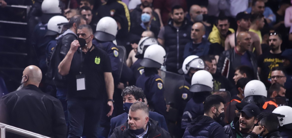 Στο ξεκίνημα του ντέρμπι του Άρη με τον ΠΑΟΚ για την 23η αγωνιστική της Basket League υπήρξε ένταση που ευτυχώς εκτονώθηκε γρήγορα.