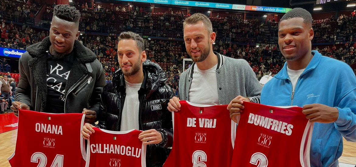 Την ευκαιρία να πάρουν μία γεύση από το ντέρμπι της βραδιάς στην Ευρωλίγκα, το παιχνίδι της Μιλάνο με τη Ρεάλ Μαδρίτης πήραν τέσσερις ποδοσφαιριστές της Ίντερ και ένας της Μίλαν. Εκτός από το χειροκρότημα, έφυγαν από το γήπεδο και με φανέλες της Μιλάνο που είχαν το όνομα τους.