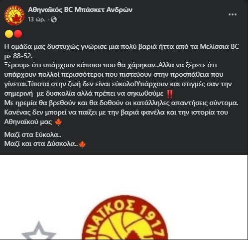 Ο Αθηναϊκός γνώρισε βαριά ήττα με 88-52 στα Μελίσσια, με τη διοίκηση της ομάδας να παίρνει βαριά αυτό το αποτέλεσμα.