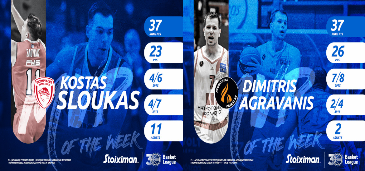 Δύο Έλληνες μπασκετμπολίστες πραγματοποιώντας σπουδαίες εμφανίσεις αναδείχθηκαν Stoiximan MVP of the Week! Πρόκειται για τους Κώστα Σλούκα, Δημήτρη Αγραβάνη!