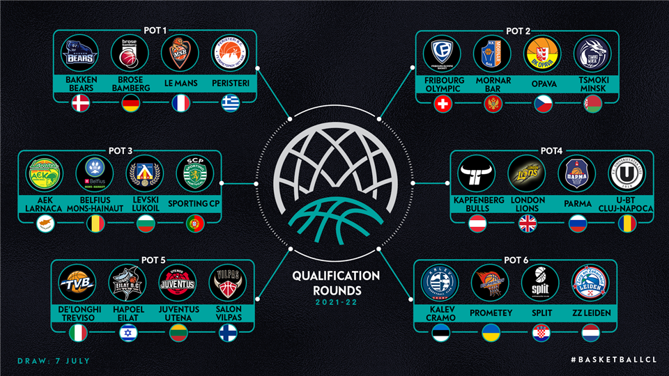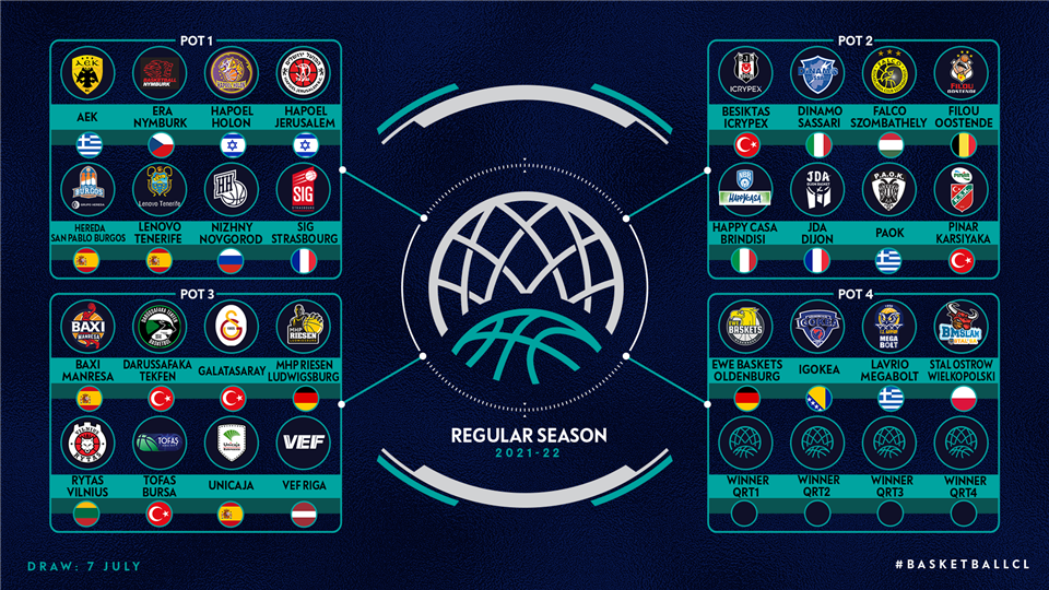 Η κλήρωση του Basketball Champions League θα διεξαχθεί στις 7 Ιουλίου στα γραφεία της FIBA στην Ελβετία. Συνολικά 32 ομάδες θα πάρουν μέρος στην κανονική διάρκεια, ενώ θα υπάρξει και προκριματική φάση. Οι 28 ομάδες έχουν ήδη εξασφαλίσει τη θέση τους στην κανονική διάρκεια και τέσσερις θα προκύψουν από την προκριματική φάση. Στο πρώτο κομμάτι το ελληνικό ενδιαφέρον εστιάζεται στο Περιστέρι. ΑΕΚ, Λαύριο και ΠΑΟΚ είναι τρεις από τις 28 σίγουρες της regular season.