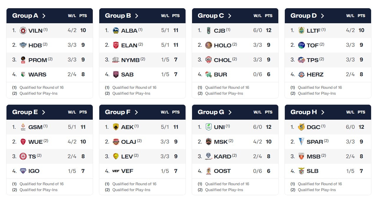 Οι όμιλοι ολοκληρώθηκαν και μαζί έγιναν γνωστές και οι 8 ομάδες που προκρίθηκαν απευθείας στους "16" αλλά και τα οκτώ ζευγάρια που θα βγάλουν τους άλλους οκτώ.