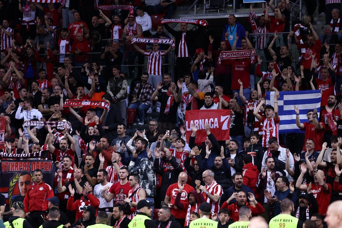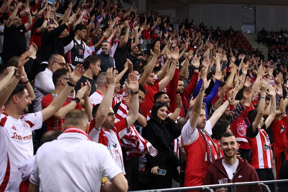 Οι φίλαθλοι του Ολυμπιακού έχουν μετατρέψει το γήπεδο σε… έδρα, «κοκκινίζοντας» τις εξέδρες και στηρίζοντας με πάθος την ομάδα του Γιώργου Μπαρτζώκα από το πρώτο λεπτό.