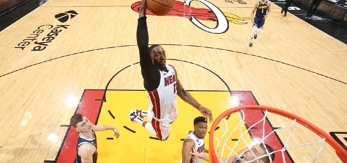 O Μπαμ Αντεμπάγιο προσπάθησε να καρφώσει στο «Kaseya Center», αλλά το μόνο που κατάφερε ήταν να στραβώσει την μπασκέτα.