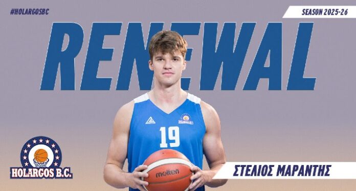 Ο Χολαργός ετοιμάζεται με τη σειρά του για την νέα σεζόν στην National League 1, με την ομάδα των Βορείων προαστίων να προχωρά σε ανανέωση με τον Στέλιο Μαράντη (2,00 - 22 ετών), διατηρώντας τον στο δυναμικό της και για την επερχόμενη χρονιά, επιβραβεύοντάς τον για την προσφορά του στο παρκέ.