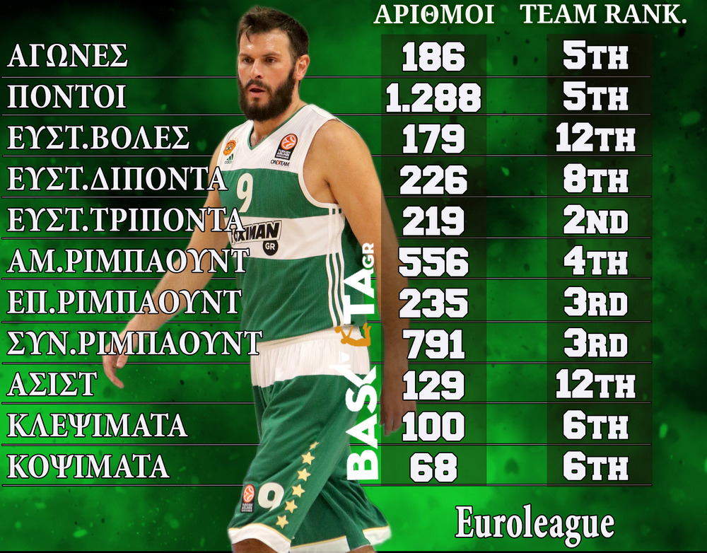 Σε αυτές τις τρεις περιόδους με τα πράσινα, ο «Batman» έγραψε αριθμούς που τον κατέταξαν ψηλά σε όλες τις ιστορικές λίστες του Παναθηναϊκού στην Ευρωλίγκα…