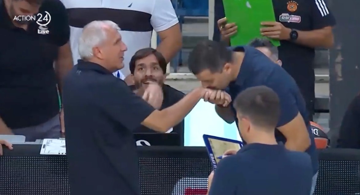 Ο προπονητής της Αναντολού Εφές, Ερντέμ Τσαν, φίλησε το χέρι του Ζέλιμιρ Ομπράντοβιτς, για να δείξει το σεβασμό του στον Σέρβο τεχνικό, πριν από την έναρξη της φιλικής αναμέτρησης στο ΟΑΚΑ για το τουρνουά «Παύλος Γιαννακόπουλος».