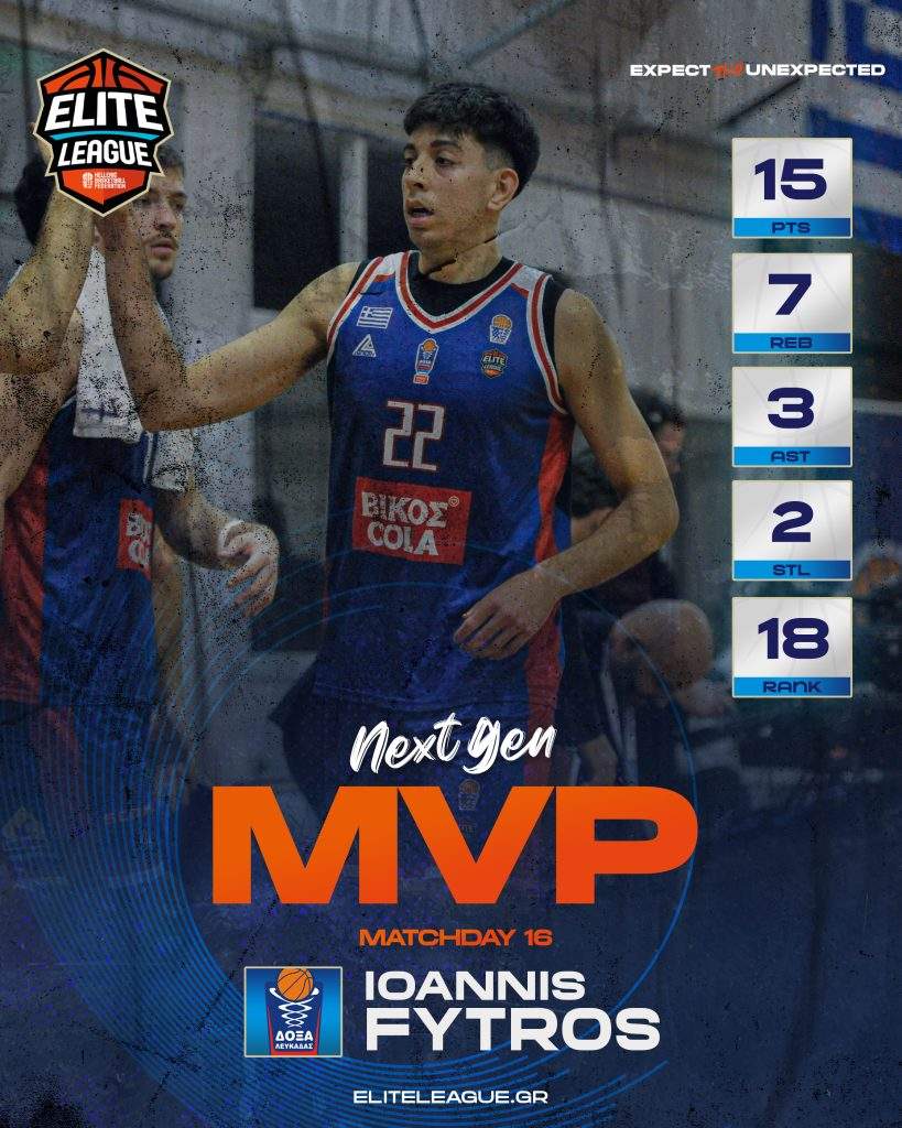 Πολυτιμότερος παίκτης κάτω των 23 ετών αναδείχθηκε ο Γιάννης Φύτρος κερδίζοντας το νεοσύστατο βραβείο MVP Next Gen. Ο 21χρονος γκαρντ της Δόξας Λευκάδας ΒΙΚΟΣ COLA στη νίκη επί της ΝΕΜ (80-74) συγκέντρωσε 18 βαθμούς στο σύστημα αξιολόγησης έχοντας 15 πόντους με 0/2 βολές, 6/6 δίποντα και 1/5 τρίποντα, μαζί με 7 ριμπάουντ, 3 ασίστ, 2 κλεψίματα και 3 κερδισμένα φάουλ σε 31:26.