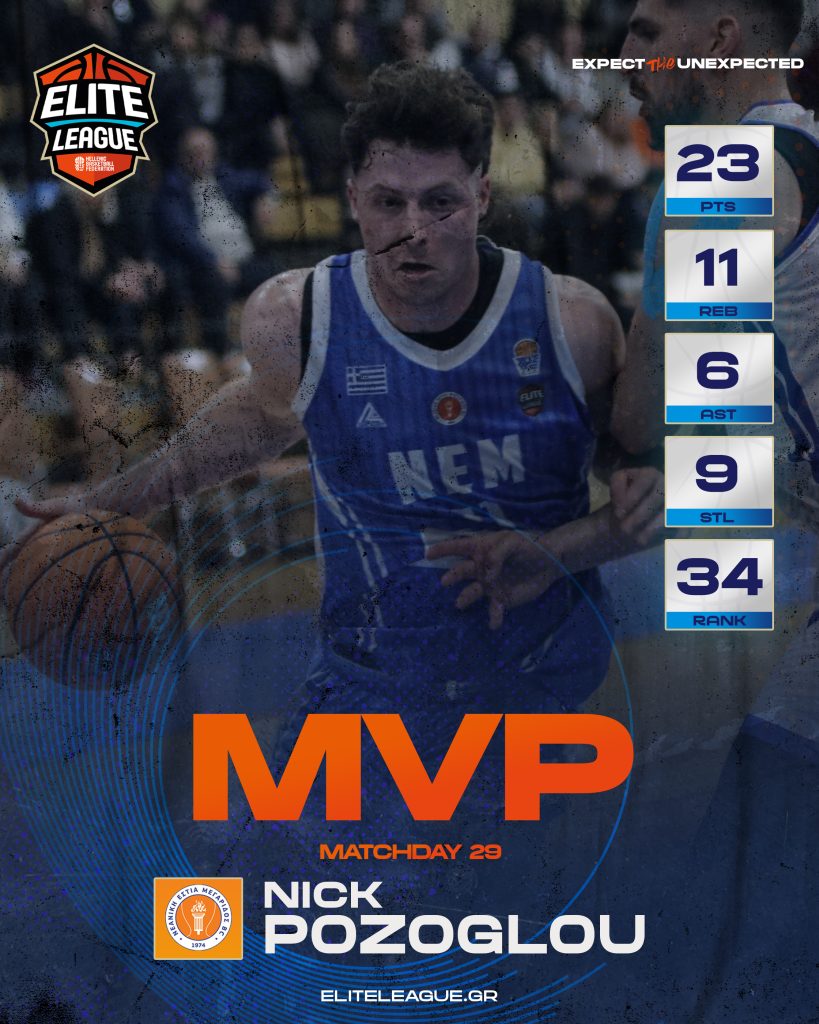 Η ΝΕΜ συνέχισε τη νικηφόρα πορεία της και στην 29η αγωνιστική, με τον Νικ Πόζογλου να ξεχωρίζει για μια ακόμη φορά, και να αναδεικνύεται MVP της αγωνιστικής της Elite League.