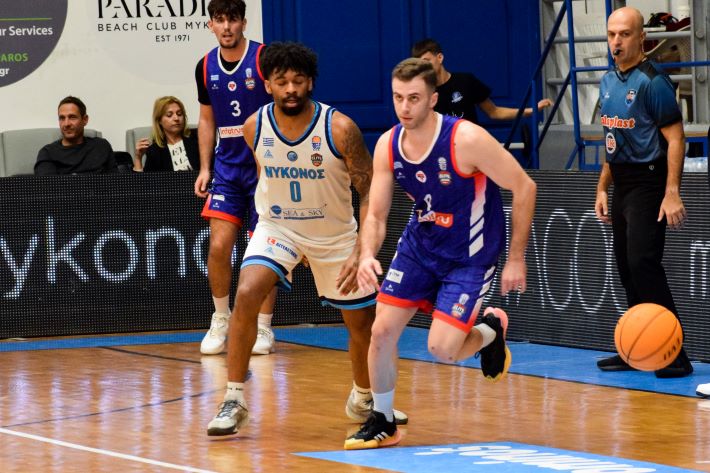 Στη κορυφή και στο 8-1 βρίσκεται η Μύκονος που με ένα πολύ καλό δεύτερο ημίχρονο κέρδισε πιο δύσκολα από το τελικό 81-66 την ΧΑΝΘ και απολαμβάνει τη μοναξιά της πρώτης θέσης. Το παιχνίδι ήταν κλειστό στο πρώτο ημίχρονο, με τη ΧΑΝΘ να φτάνει και στο +6 (30-36) στο 19', αλλά η αγωνιστική άνοδος του Μάντζαρη στο δεύτερο ημίχρονο ώθησε τον ΑΟΜ στο να τρέξει ένα 14-0, να φτάσει στο 47-36 στο 23' και να διαχειριστεί το παιχνίδι ως το τέλος. Ο Φιλιππάκος σκόραρε 22 πόντους (8/13 διπ., 1/2 τριπ., 7 ριμπ.) για τους νικητές και τον ακολούθησε ο Μάντζαρης με 14 πόντους (3/4 τριπ., 6 ριμπ.). Για την αξιόλογη ΧΑΝΘ, από 14 πόντους είχαν Ιτούνας (3/8 διπ., 2/5 τριπ., 4 ριμπ.) και Τουλούπης (5/10 διπ., 1/1 τριπ., 7 ριμπ.).