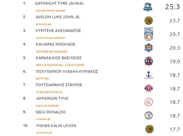 Δείτε παρακάτω τους 10 πρώτους παίκτες στη σχετική λίστα: