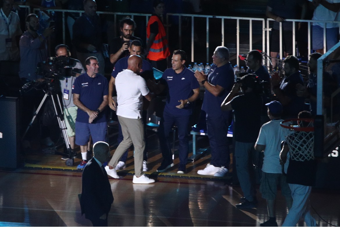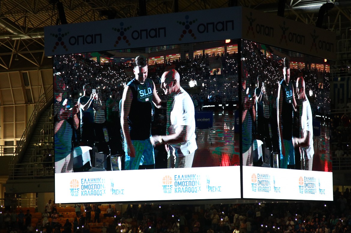 Μετά τον πρόλογο του Βασίλη Σκουντή και με άπαντες να ακολουθούν πιστά την παράκληση να ανοίξουν τους φακούς των κινητών τους, ο μοναδικός Νικ έκανε την εμφάνισή του στο παρκέ, χαιρετώντας έναν προς έναν τα μέλη των αποστολών των Εθνικών Ελλάδας και Σλοβενίας. Αμέσως μετά, ένα βίντεο ως αφιέρωμα από την ΕΟΚ προβλήθηκε για χάρη του, για να δει μετά την φανέλα του να ανεβαίνει ψηλά, με ψυχή βαθιά...