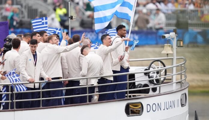 Η Τελετή Έναρξης των Ολυμπιακών Αγώνων του Παρισιού ξεκίνησε με την ελληνική αποστολή να μπαίνει πρώτη στον Σηκουάνα και τον Γιάννη Αντετοκούνμπο με την Αντιγόνη Ντρισμπιώτη να είναι οι σημαιοφόροι.
