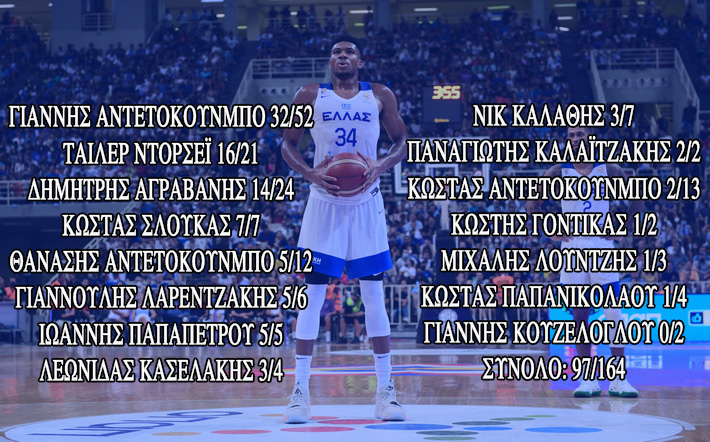 Μένοντας ωστόσο στην «πληγή» των βολών, το θέμα ασφαλώς και αφορά και στον σούπερ σταρ της ομάδας. Παρότι βελτίωσε αρκετά και αυτό το κομμάτι του παιχνιδιού του, οι βολές εξακολουθούν να μην είναι το… φόρτε του Γιάννη Αντετοκούνμπο. Στη σεζόν που πέρασε στο ΝΒΑ εκτέλεσε με 72,2% στην κανονική περίοδο και 67,9% στα πλέι οφ. Στα τέσσερα ματς του Αυγούστου με την Εθνική εκτέλεσε με 61,53% αφού είχε 32/52 βολές.