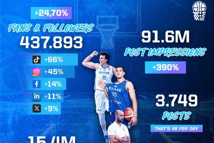 Το Instagram και το Tik Tok ήταν τα μέσα τα οποία έδειξαν σε μεγαλύτερο βαθμό της αύξησης του ενδιαφέροντος του κόσμου για τις Εθνικές Ομάδες. Το πρώτο παρουσίασε αύξηση σε followers της τάξης του 45%, ενώ το δεύτερο, που είναι και η σχετικά πιο πρόσφατη προσθήκη στα social media της ΕΟΚ, έδειξε αύξηση 66%. Συνολικά, 437.893 άνθρωποι είναι πλέον… ακόλουθοι των κοινωνικών δικτύων της Ελληνικής Ομοσπονδίας Καλαθοσφαίρισης.