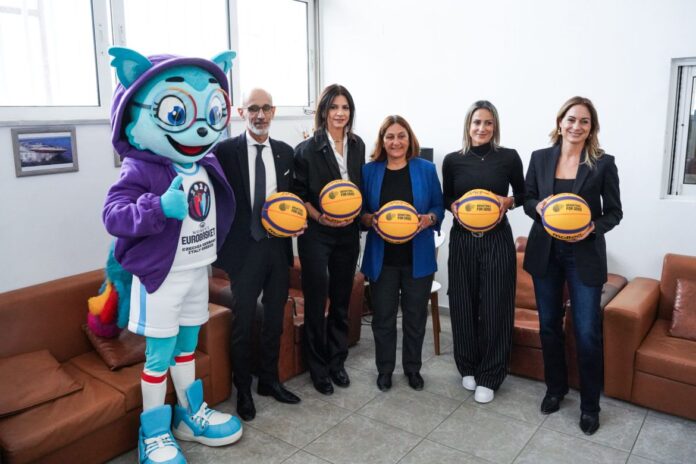 Η Φιόνα, μασκότ του Eurobasket 2025, ήταν η ευχάριστη έκπληξη για τους ωφελούμενους της δομής, καθώς συνόδεψε το επιτελείο της ΕΟΚ και χάρισε αναμνηστικά δώρα και μπάλες σε όλους.