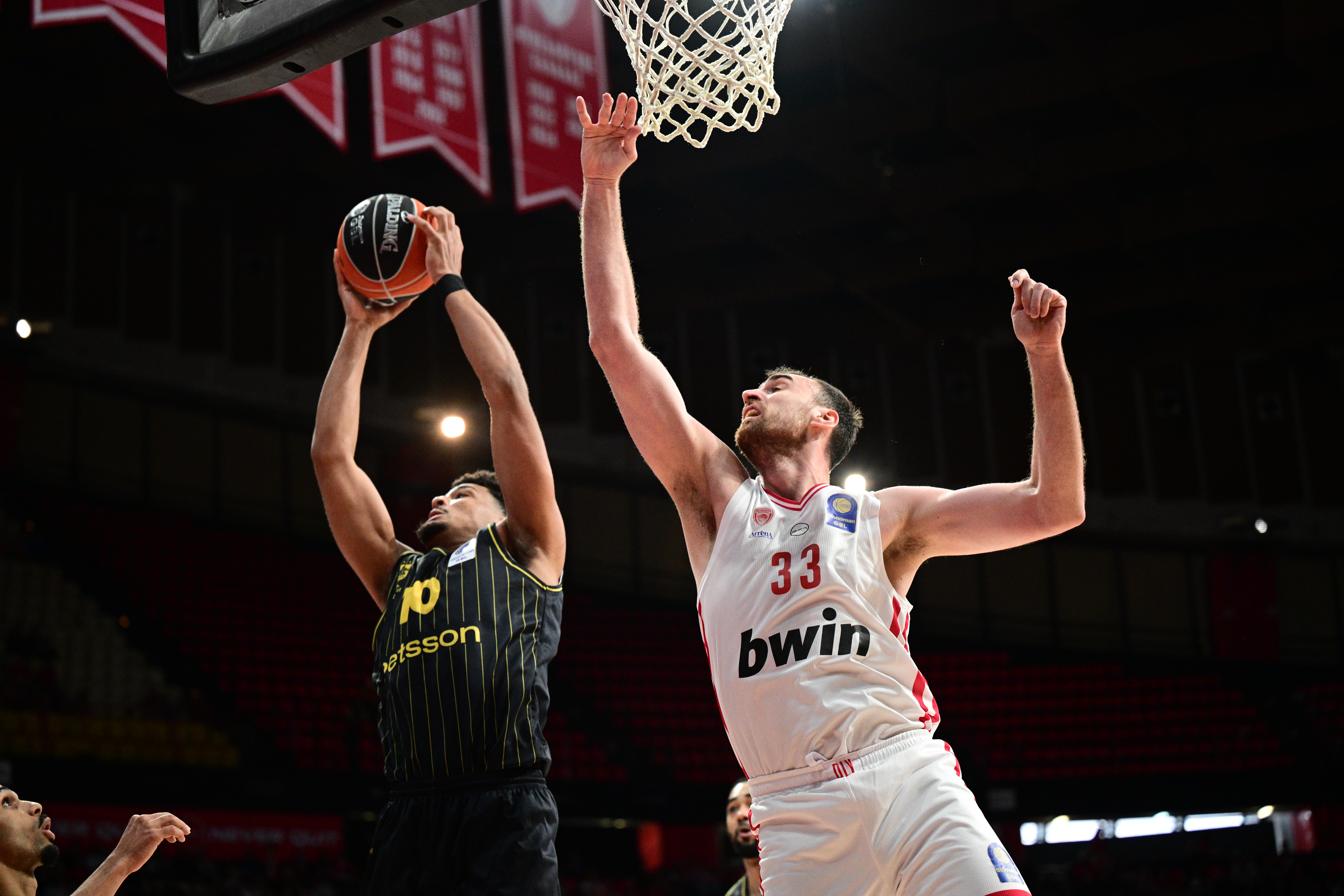 Ο Ολυμπιακός και ο Άρης πήγαν στα αποδυτήρια ισόπαλοι στο ΣΕΦ, με το σκορ στο 40-40 στο τέλος του πρώτου ημιχρόνου για την 25η αγωνιστική της Stoiximan GBL.