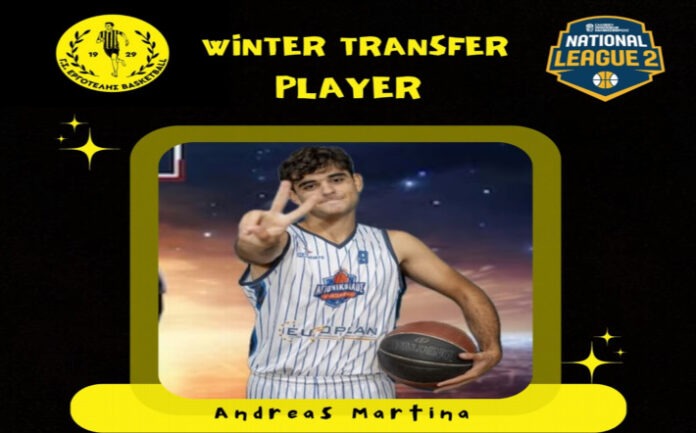Ο λόγος για τον Ανδρέα Μαρτίνα (1,90 – 20 ετών) που ανδρώθηκε στις ακαδημίες του ΟΦΗ και πλέον θα αγωνιστεί στον Εργοτέλη.